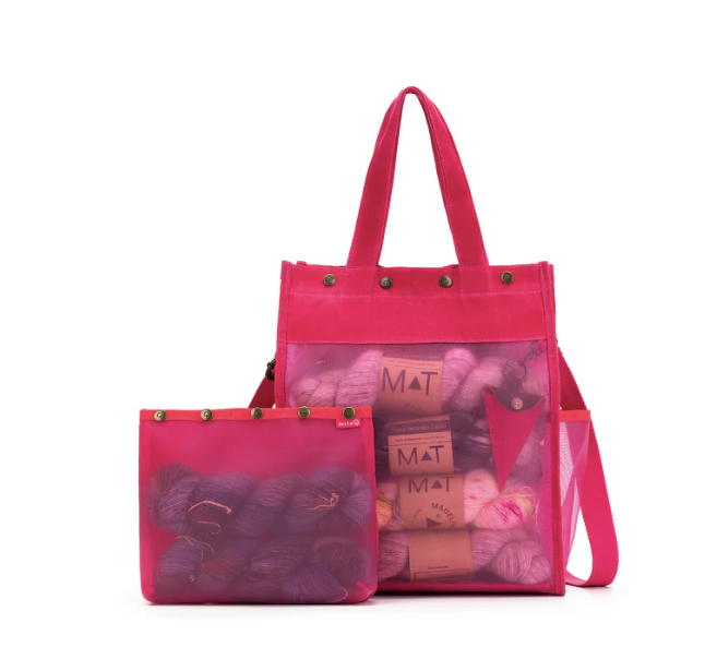 Introducing the della Q Tall Maker's Mesh Tote – a fusion of the tote and a rucksack, perfect for your crafting adventures on warmer days. The Tall Maker's Mesh Tote is the sister bag to the Maker's Mesh Tote, but a bit taller! This fully see-through project bag is designed for practicality and style. Carry it effortlessly as a crossbody or shoulder bag. With ample interior space, it comfortably accommodates over 10 skeins of yarn or medium-to-large-sized projects. Complete with a matching clip-in Scissor Pocket, exclusive canvas Oh Snap, and adjustable strap, it's available in seven vibrant colors.