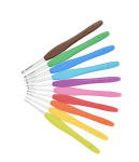 Amour Crochet Hooks are incredibly soft and allow the yarn to slide without any effort. Amour handles are in vibrant colors to easily identify sizes. The handle is made of elastomer rubber, allowing you to experience comfortable and stress-free crochet.